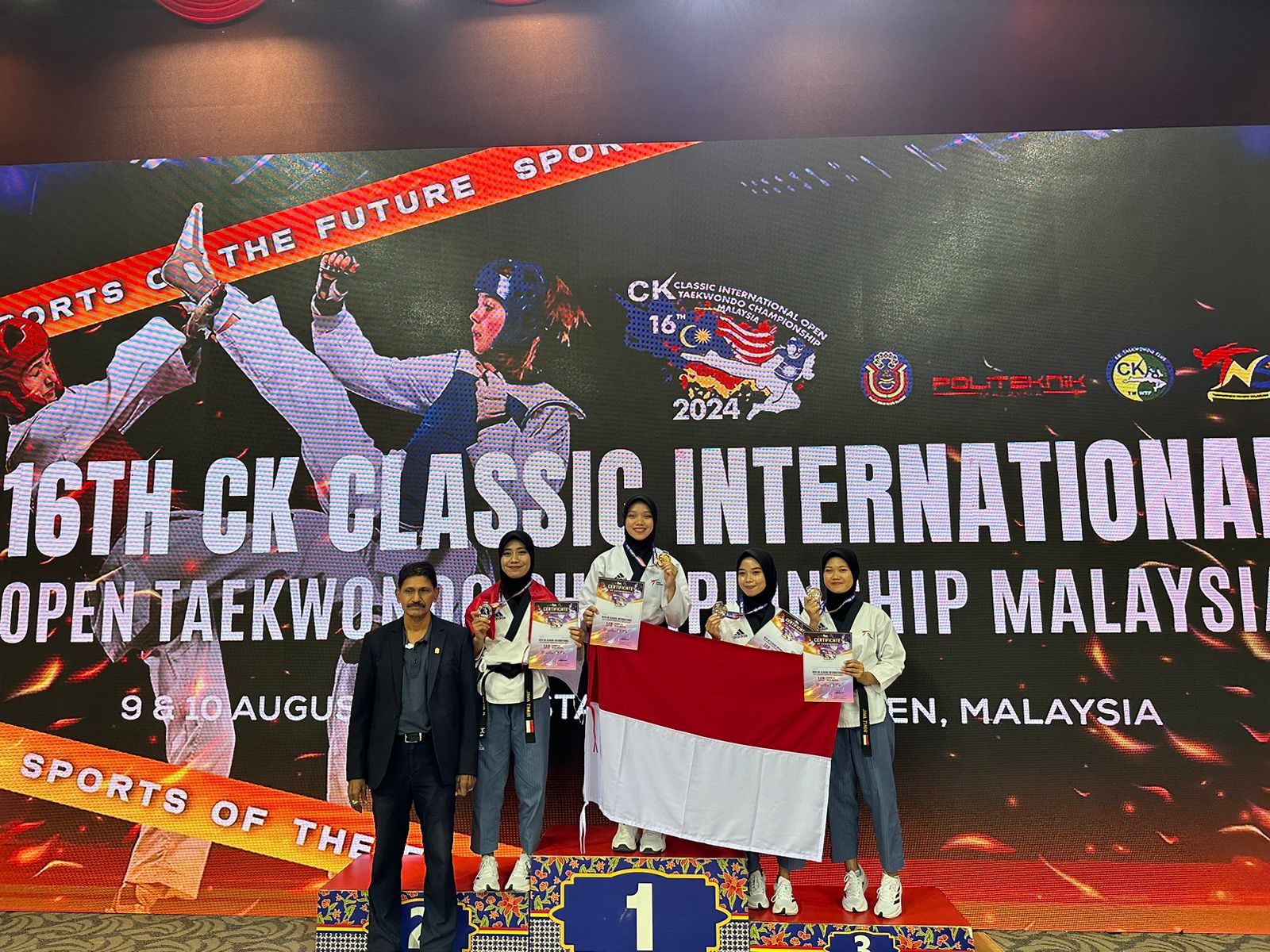 Aliefia Putri Anjani NIM A1012211007, mahasiswi aktif semester 7 Fakultas Hukum, Prodi Ilmu Hukum, Universitas Tanjungpura. Meraih prestasi Medali Emas (Juara I) pada Kejuaraan 16TH CK CLASSIC INTERNATIONAL TAEKWONDO CHAMPIONSHIP MALAYSIA 2024 yang dilaksanakan pada tanggal 9 & 10 Agustus 2024 di Stadium DSS Uniten, Putrajaya, Malaysia. Kejuaraan 16TH CK CLASSIC INTERNATIONAL TAEKWONDO CHAMPIONSHIP MALAYSIA 2024 diikuti oleh kurang lebih 21 negara, yang terdiri dari Australia, New Zealand, Thailand, Indonesia, Japan, Singapore, Kazakhstan, Cambodia, Nepal, Iran, Korea, Taiwan, Hongkong, Burma, China, Yemen, Uzbekistan, Sri Langka, India, dan Filipina.