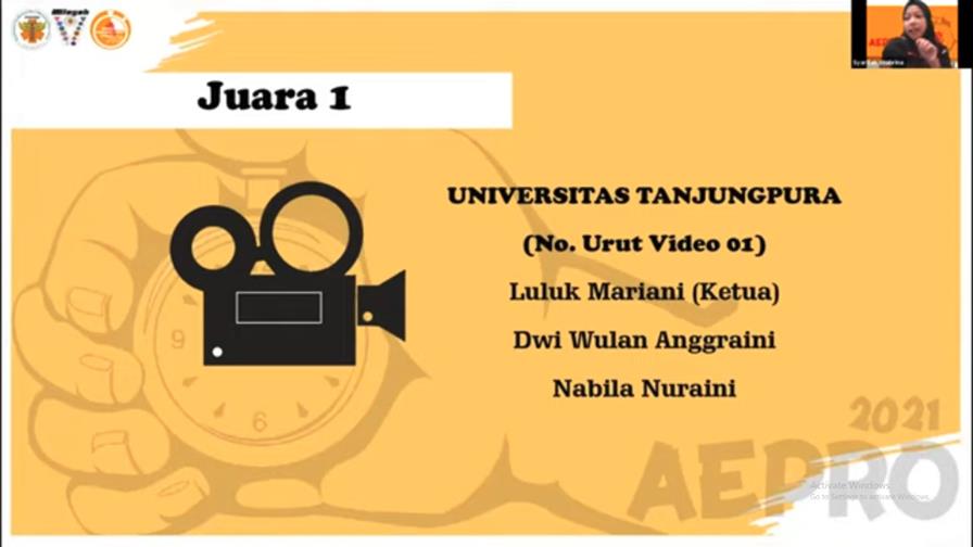 Kegiatan dimulai dengan Webinar Nasional dilanjutkan dengan pengumuman pemenang Lomba Video Kreatif dan Lomba Public Poster. Tim dari Fakultas Kedokteran Universitas Tanjungpura yang diwakili oleh Luluk Mariani, Dwi Wulan Anggraini dan Nabila Nuraini berhasil meraih juara 1 serta mendapatkan juara favorit lomba video kreatif. Juara 2 diraih oleh Universitas Udayana dan Juara 3 diraih oleh Universitas Muhammadiyah Purwokerto,