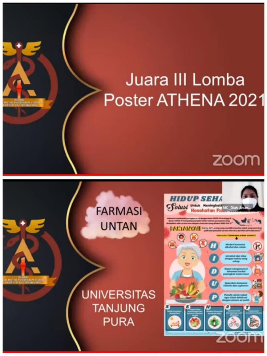 Mahasiswa Fakultas Kedokteran Universitas Tanjungpura atas nama Tara Eka Sundari Khairanita dan Bella Cristin berhasil meraih juara 3 pada Lomba Poster Publik yang diikuti oleh 94 Tim dan Lomba essay terdiri dari 22 Tim yang berasal dari beberapa Perguruan Tinggi.