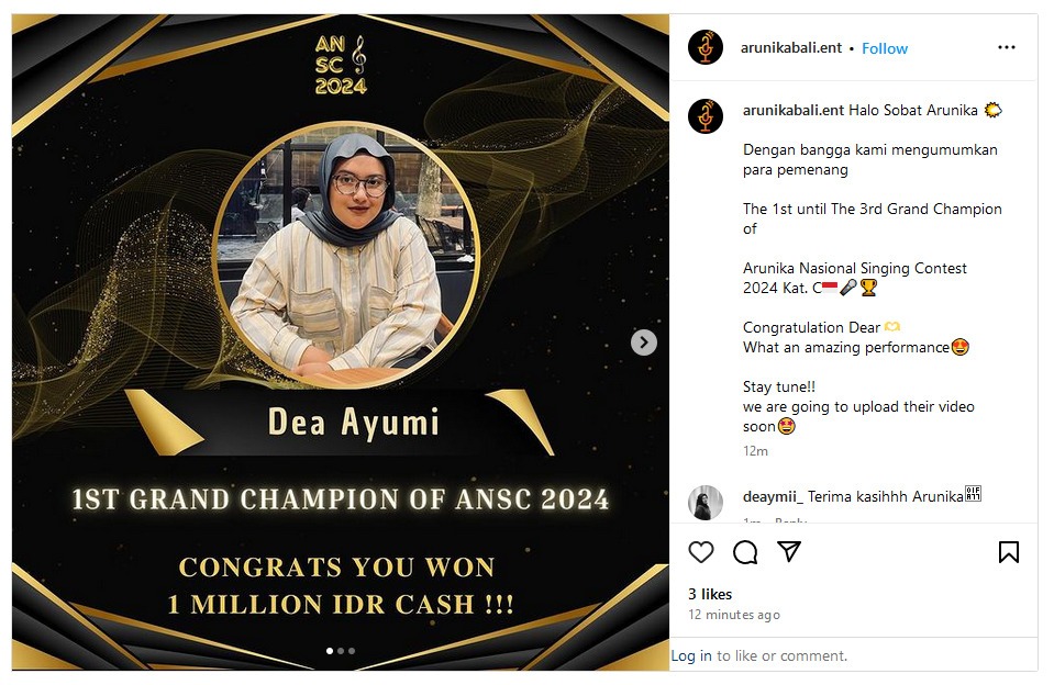 Arunika Nasional Singing Competition merupakan lomba menyanyi yang diselenggarakan oleh Arunika Entertainment, Bali Pelaksanaan online dari tanggal 31 Agustus – 3 September. Universitas Tanjungpura diwakili oleh Dea Ayumi NIM E1012211029 Prodi Administrasi Publik mendapatkan Juara 1