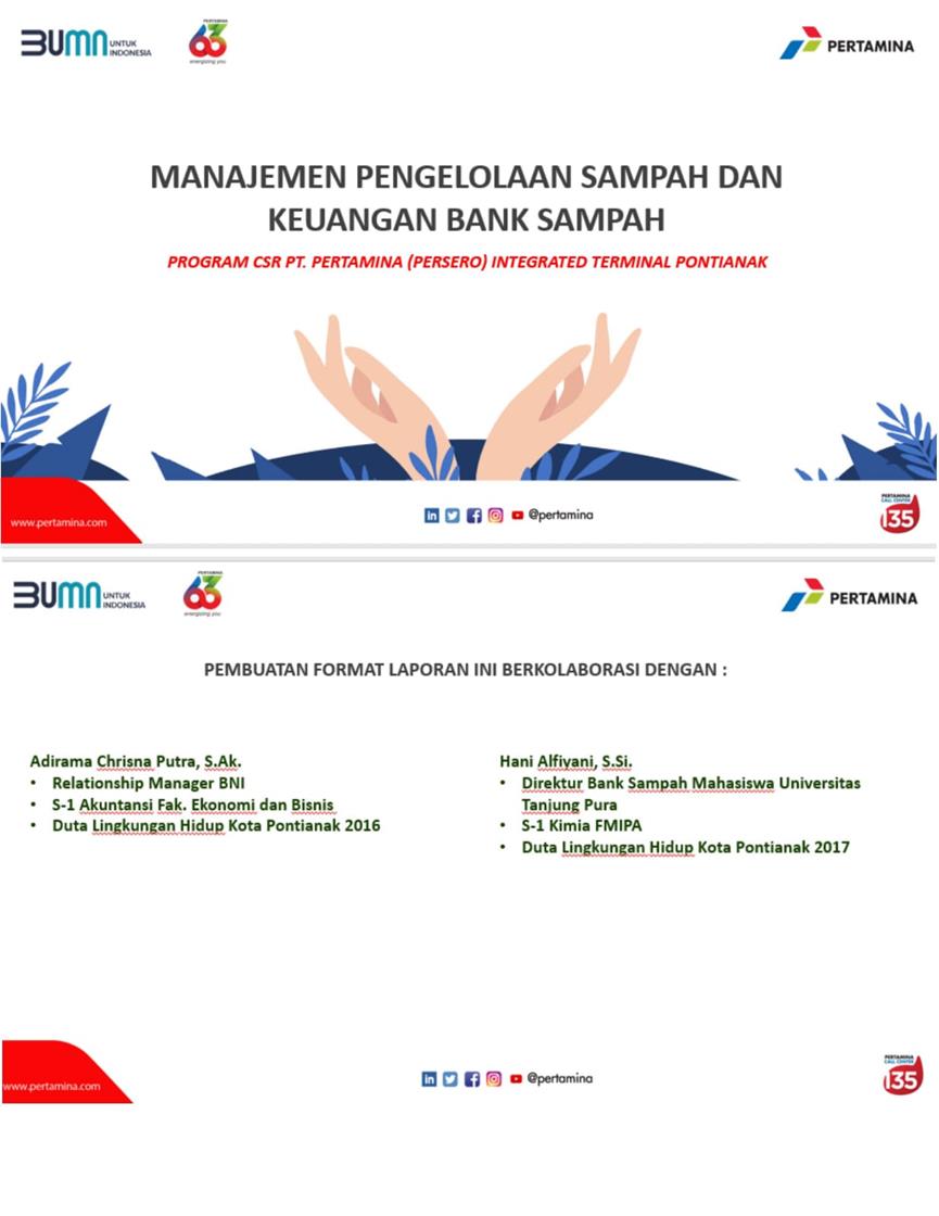 Dinas Lingkungan Hidup Kota Pontianak pada tanggal 16 Agustus 2021, bertempat di Ruang Pertemuan TPTS Eidelweis Jl. Purnama 2 Kota Pontianak melakukan Bibingan Teknis (Bimtek) mengenai Manajemen Pengelolaan Sampah dan Keuangan Bank Sampah. Bintek ini diselengarakan berdasarkan permasalahan yang dialami oleh beberapa Bank Sampah Kota Pontianak. Materi bimtek dibuat dari hasil kolaborasi antara salah satu karyawan Bank BUMN Kota Pontianak yaitu Adirama Chrisna Putra, S.Ak., dan juga Ketua Bank Sampah Mahasiswa Universitas Tanjungpura (Hani Alfiyani) yang di dukung pembuatan materi oleh PT. Pertamina (PERSERO). Sehingga Dinas Lingkungan Hidup Kota Pontianak mengajukan permohon kepada Ketua Bank Sampah Mahasiswa Universitas Tanjungpura untuk menjadi narasumber mengenai tema bimtek yang telah disebutkan.