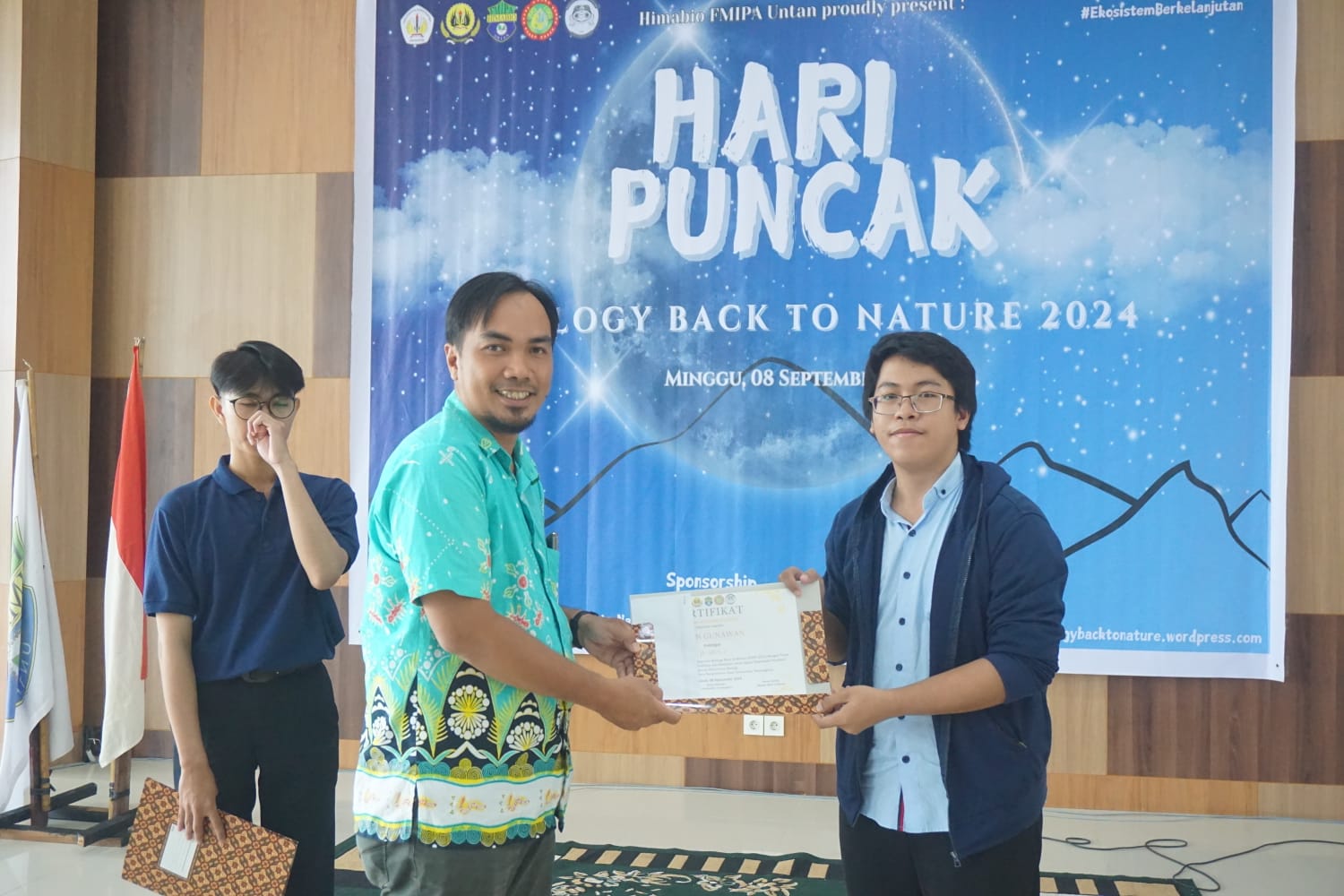 Peserta yang ikut berkompetesi berjumlah 13 Tim (21 peserta) Biology Back to Nature (B2N) 2024. Universitas Tanjungpura di wakili oleh Alvin Gunawan dari Prodi Farmasi. Kegiatan Biology Back to Nature (B2N) 2024 di laksanakan pada tanggal 7 September 2024, secara Online Via Zoom Meeting yang diselenggarakan oleh Himpunan Mahasiswa Biologi Fakultas Matematika dan Ilmu Pengtahuan Alam Universitas Tanjungpura.