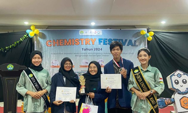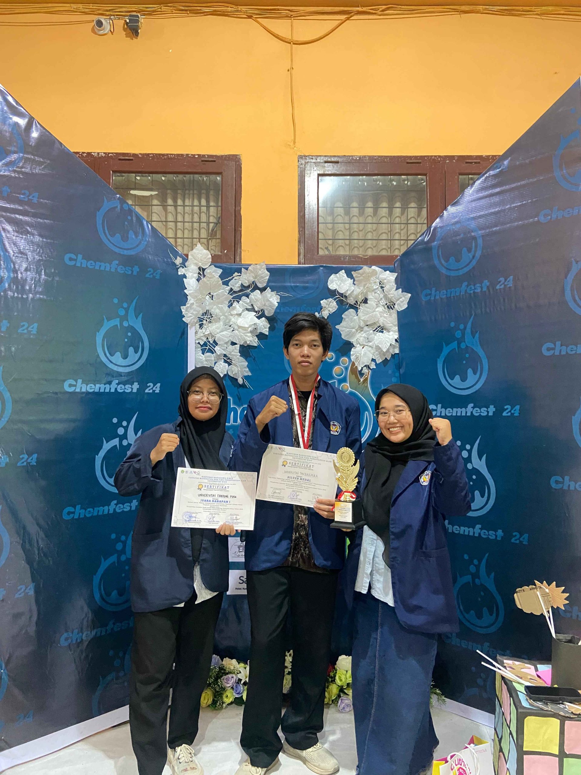 Essay Competition Chemistry Festival (Chem-Fest) merupakan kegiatan yang dilaksanakan Himpunan Mahasiswa Kimia Fakultas Matematika dan Ilmu Pengetahuan Alam Universitas Negeri Riau. Kegiatan ini dilaksanakan secara offline pada tanggal 16-17 November 2024 di Kota Pekanbaru. Kegiatan ini dilaksanakan 2 kali persentasi dengan persentasi pertama seleksi final dan persentasi ke dua merupakan final. Adapun prestasi yang di dapat ialah Silver Medal (Juara 2) di bidang Teknologi.