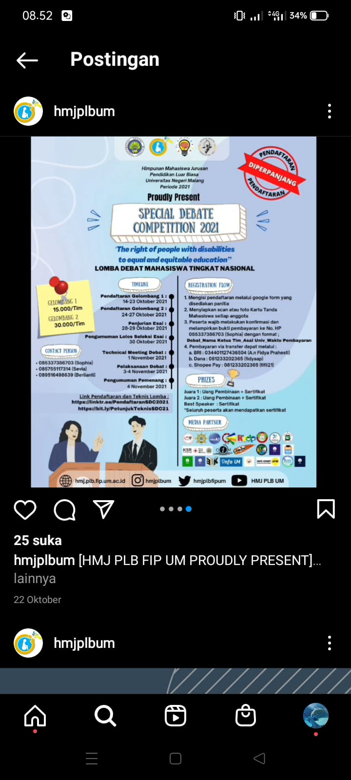Dalam rangka mewujudkan mahasiswa yang memiliki pemikiran yang kritis dan berwawasan luas, maka HMJ PLB FIP UM 2021 mewadahi mahasiswa di seluruh Indonesia dalam lomba debat dan essaytingkat nasional yang dapat memberikan pengalaman beradu pemikiran dengan mahasiswa dari seluruh Indonesia serta dapat menambah pengetahuan dan pengalaman mahasiswa yang tentunya dapat memberikan manfaat kepada mereka. Lomba Esai yang dilaksanakan untuk para mahasiswa se Indonesia agar dapat mengajukan opini mengenai kedisabilitasan. Tema lomba ini yaitu “The Right of People with Disabilities to Equal and Equitable Education”.