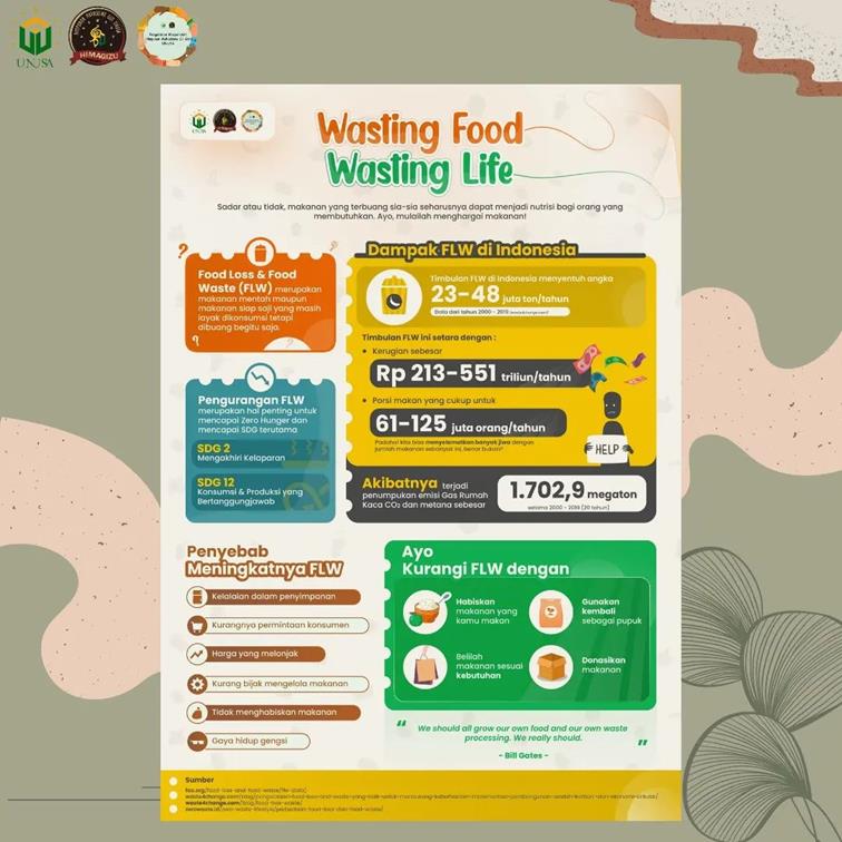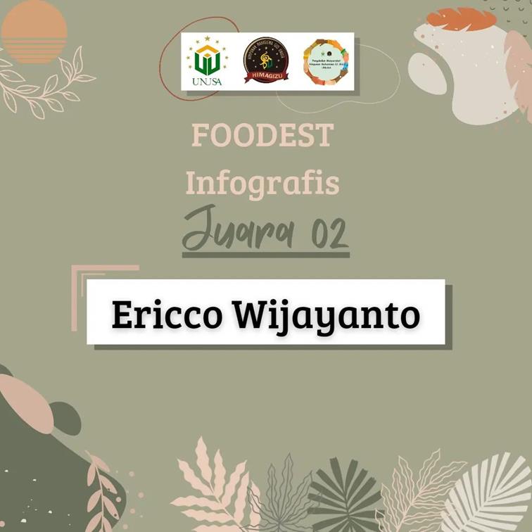 GROW (Infographic Food Waste Contest) merupakan salah satu cabang lomba dalam rangkaian acara FOODEST 2021 (Food Waste Creation Contest 2021) yang diselenggarakan oleh Himpunan Mahasiswa S1 Gizi Universitas Nahdlatul Ulama Surabaya (HIMAGIZU). Lomba ini bertujuan untuk mengajak siswa SMA/Sederajat, mahasiswa, dan masyarakat umum agar aktif terlibat dalam memberikan informasi dan edukasi penanganan limbah sisa makanan melalui infografis yang informatif, kreatif, dan inovatif sehingga mampu menarik dan memotivasi pembacanya. Pada kesempatan kali ini, mahasiswa Universitas Tanjungpura, Fakultas MIPA Jurusan Kimia, Ericco Wijayanto (H1031191039) berhasil meraih Juara 2.