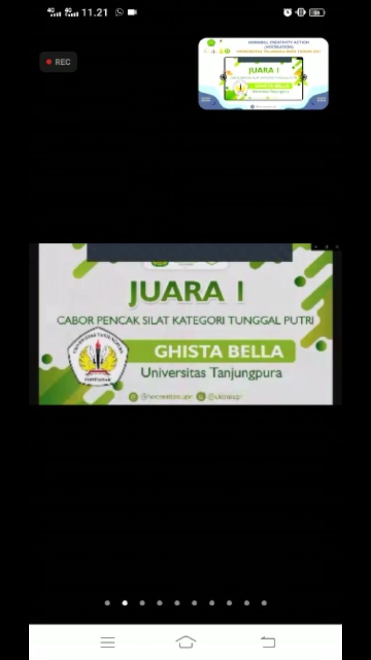 Hornbill Creativity Action Universitas Palangka Raya (HOCREATIONUPR) 2021 terbuka se-Indonesia. Tanggal kegiatan 01 November – 15 Desember 2021. Ghista Bella, D1111161022 mahasiswi Teknik Untan Prodi Teknik Kelautan angkatan 2016 mendapatkan juara 1 dalam kejuaraan antar Perguruan Tinggi Tingkat Nasional. Setelah mengalahkan wakil dari Universitas Palangka Raya.