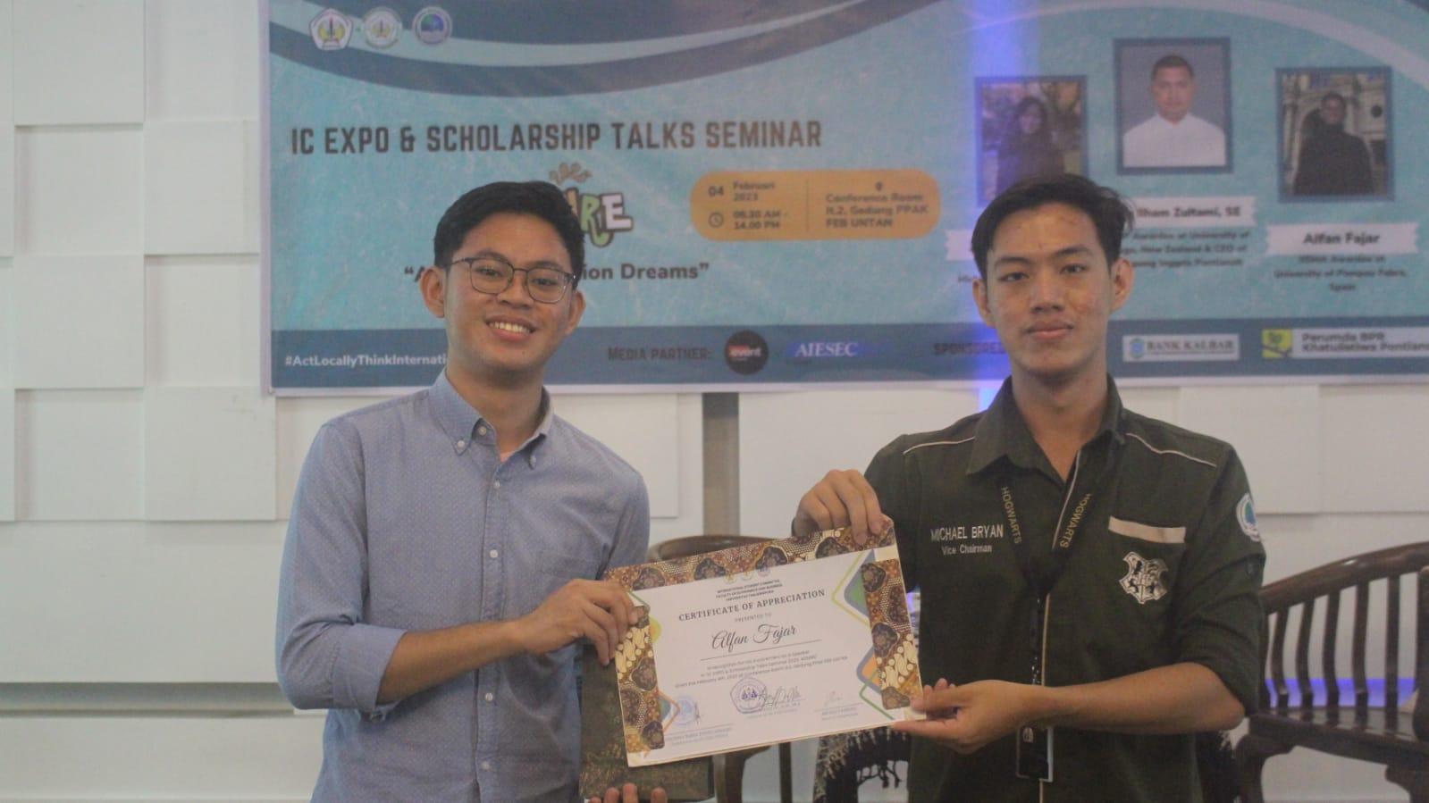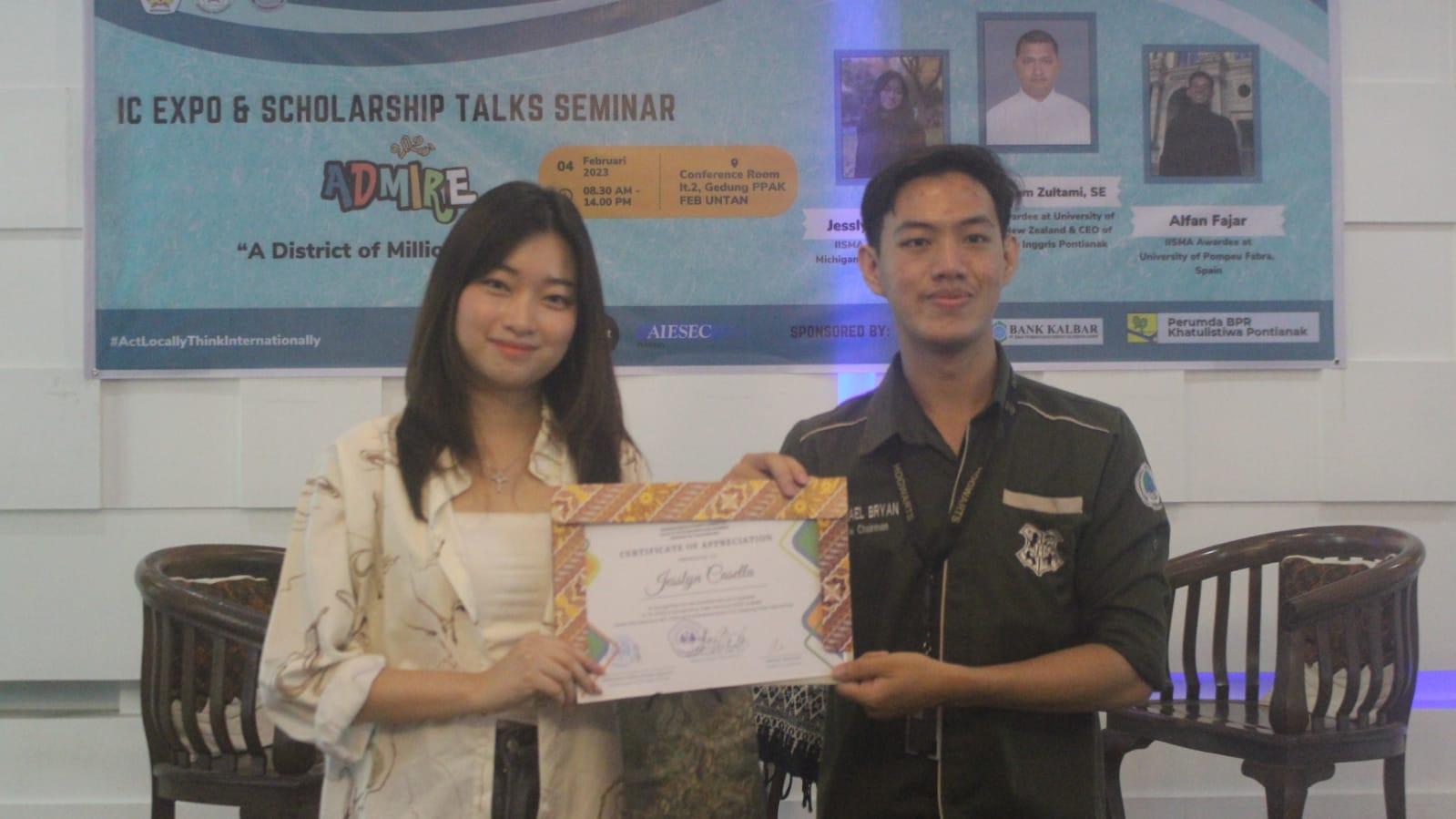 Pada tanggal 4 Februari 2023, International Student Committee (ISC) FEB UNTAN mengadakan kegiatan IC EXPO & SCHOLASHIP TALKS SEMINAR 2023 ADMIRE. Kegiatan ini bertujuan untuk memberikan pengetahuan seputar beasiswa IISMA dan LPDP serta mengenalkan program exchange dari kelas internasional di Ruang Conference Room PPAK Lt.2 FEB UNTAN dengan pemateri dari para penerima IISMA (Jesslyn Casella dan Alfan Fajar) dan penerima beasiswa LPDP (Syarif Ilham Zultami S.E.). Kegiatan ini mengambil nama “ADMIRE” (A district of Million Dreams) dengan ini diharapkan IC EXPO & Scholarship Talks Seminar 2023 dapat menjadi tempat dimana mimpi para pelajar yang ingin masuk kelas internasional serta ingin mengikuti program exchange maupun beasiswa dapat dipermudah melalui rangkaian acara ini.