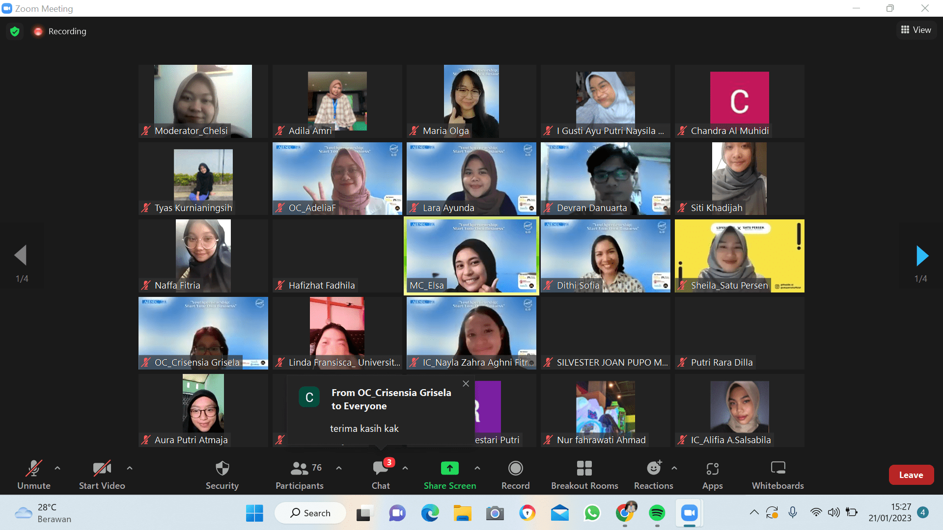 AIESEC in Untan kembali menyelenggarakan kegiatan Impact Circle 6.0 yang digelar pada Sabtu, 21 Januari 2023 lalu. Impact Circle 6.0 kali ini mengangkat tema “Youthpreneurship: Start Your Own Business” yang berdasarkan pada Suistanable Development Goals (SDG) 8 : Decent Work and Economic Growth dengan tujuan untuk meningkatkan kesadaran peserta mengenai keadaan ekonomi serta peran yang dimiliki oleh pemuda dalam hal kewirausahaan. Kegiatan ini diselenggarakan secara online melalui platform Zoom Meeting dan berhasil mendapatkan antusiasme 180 registrant dari seluruh Indonesia.