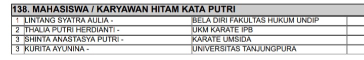 Kurita ayunina, mahasiswa prodi PPKn Fkip Untan. Meraih prestasi juara 3 kejuaraan nasional karate virtual, di kelas Mahasiswa kata perorangan putri.