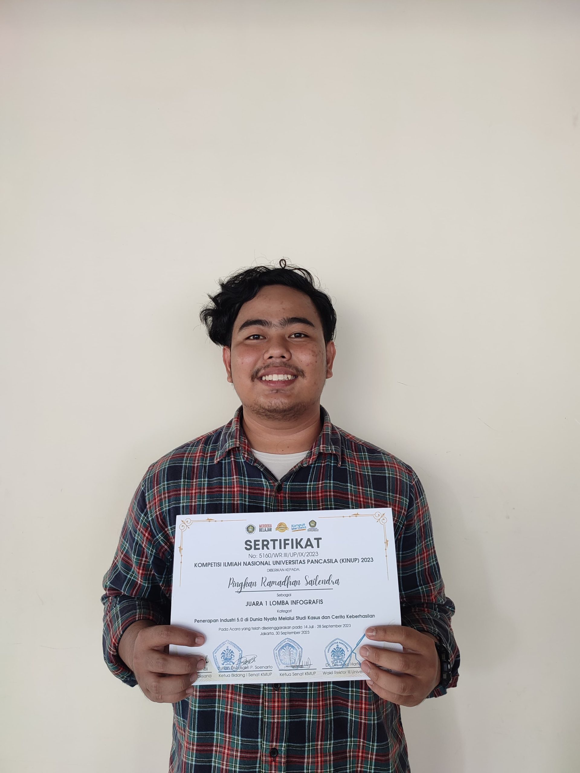 Kompetisi Ilmiah Nasional Universitas Pancasila (KINUP) 2023 meliputi berbagai macam jenis perlombaan antara lain : Lomba Infografis, Karya Tulis Ilmiah, Essay, Debat dan Public Speaking. Pinkan Ramadhan Sailendra NIM F1061201013 Mahasiswa FKIP Universitas Tanjungpura Meraih Juara I Lomba Infografis.