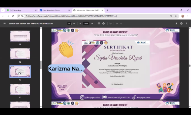 Lomba APE Digital dalam ajang Lomba Ceria PG PAUD 2025 Tingkat Nasional yang diselenggarakan oleh KPMS PG Paud Universitas Al-Azhar Indonesia pada tanggal 2 November 2025 – 8 Desember 2025 merupakan kompetisi yang mendorong mahasiswa untuk menciptakan Alat Permainan Edukatif berbasis digital yang inovatif, interaktif, dan sesuai dengan perkembangan anak usia dini. Peserta ditantang untuk menghadirkan media pembelajaran digital yang menarik, mudah digunakan, serta mampu menstimulasi aspek kognitif, motorik, sosial, dan kreativitas anak