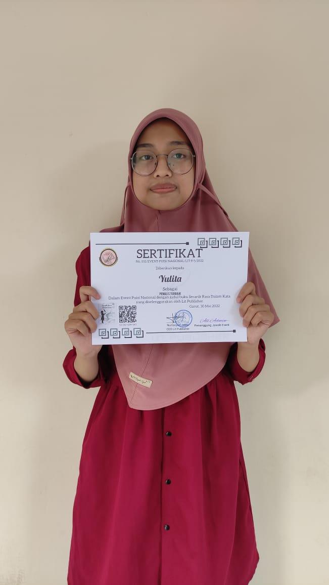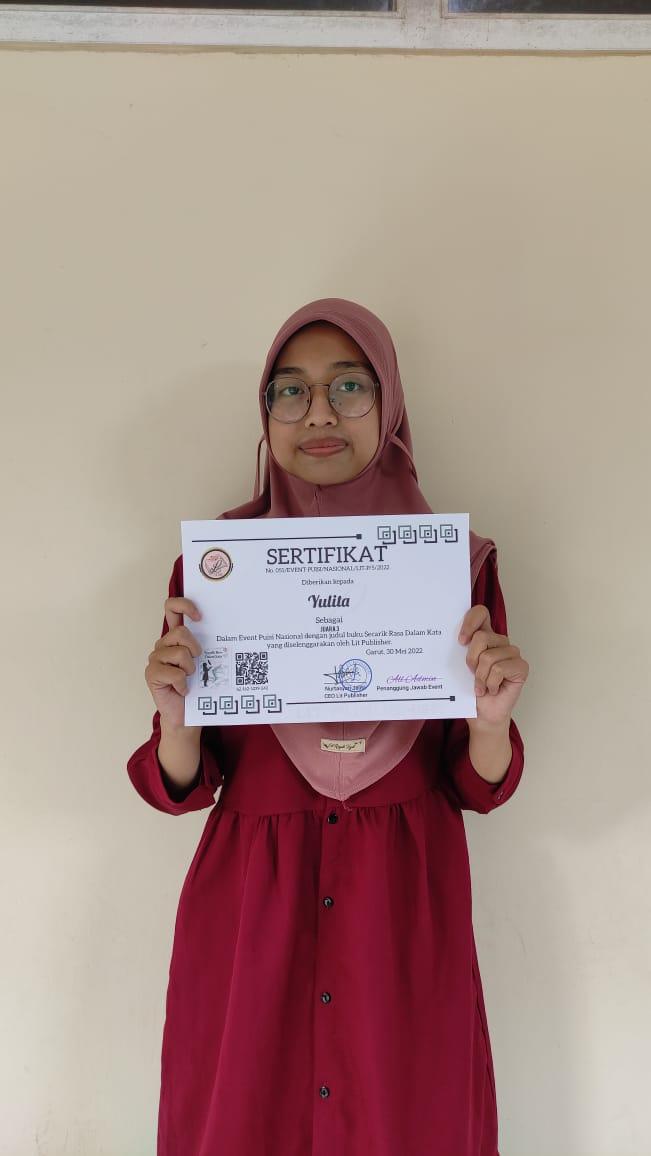 Event Puisi Nasional yang diselenggarakan oleh Lit Publisher dalam Event Tersebut Mahasiswa FKIP Untan. Yulita NIM F1041211027 Prodi Pendidikan Matematika Berhasil Meraih Juara 3 dan Penulis Terbaik