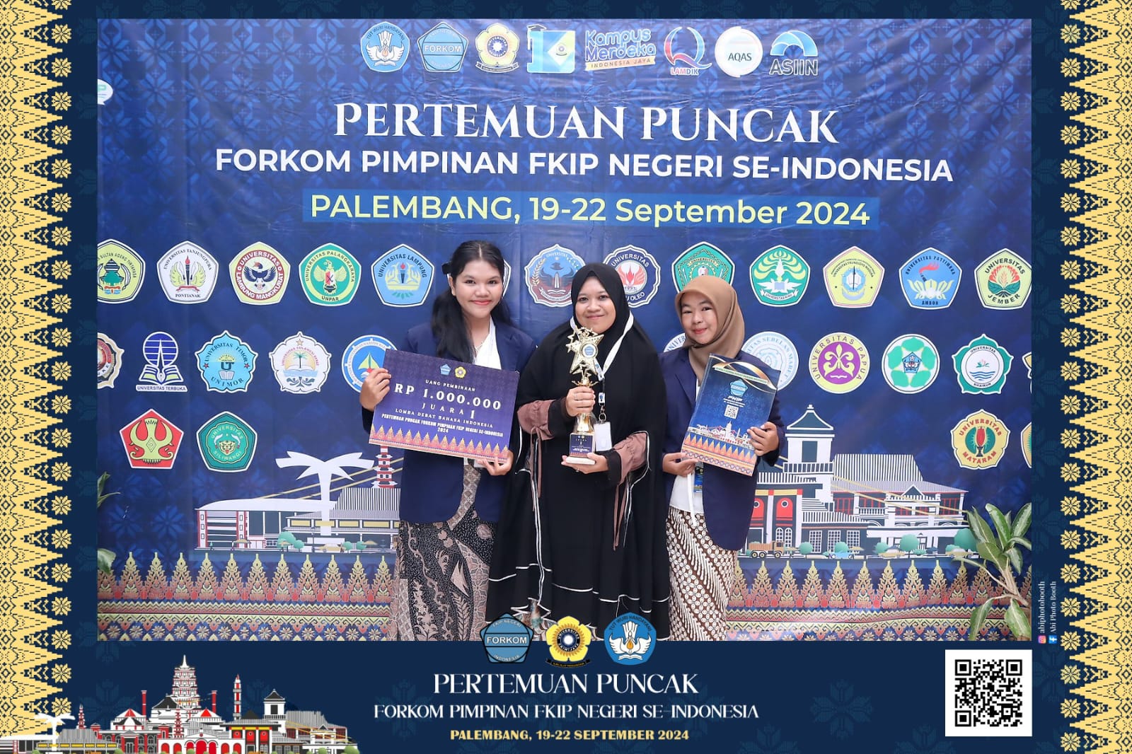 Forum Komunikasi Pimpinan FKIP Negeri Se Indonesia dilaksanakan di Universitas Sriwijaya yang berlangsung sejak tanggal 20 Mei 2024 dan Grand Final tanggal 20 September 2024. Pada kesempatan ini mahasiswa FKIP Universitas Tanjungpura an. Tri Hermaulina & Syarifah Khairunnisa Program Studi Pendidikan Matematika berhasil meraih Juara 1 pada lomba Debat Bahasa Indonesia.