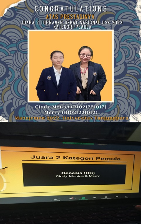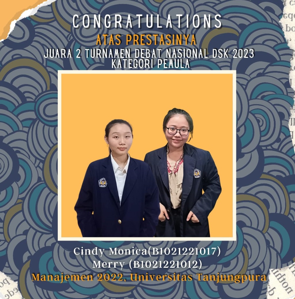 Lomba Debat DSK Open 2023 merupakan Lomba yang diselenggarakan oleh Debaters Sayap Kiri. Lomba ini merupakan Lomba yang diikuti oleh mahasiswa/mahasiswi di Indonesia. Lomba debat ini adalah lomba yang diselenggakan guna meningkatkan daya saing kemampuan menyampaikan argumentasi yang akan dituangkan dalam suatu perbedabatan. Dua mahasiswi Fakultas Ekonomi yaitu Cindy Monica B1021221017 dan Merry B1021221012 berhasil meraih juara 2.