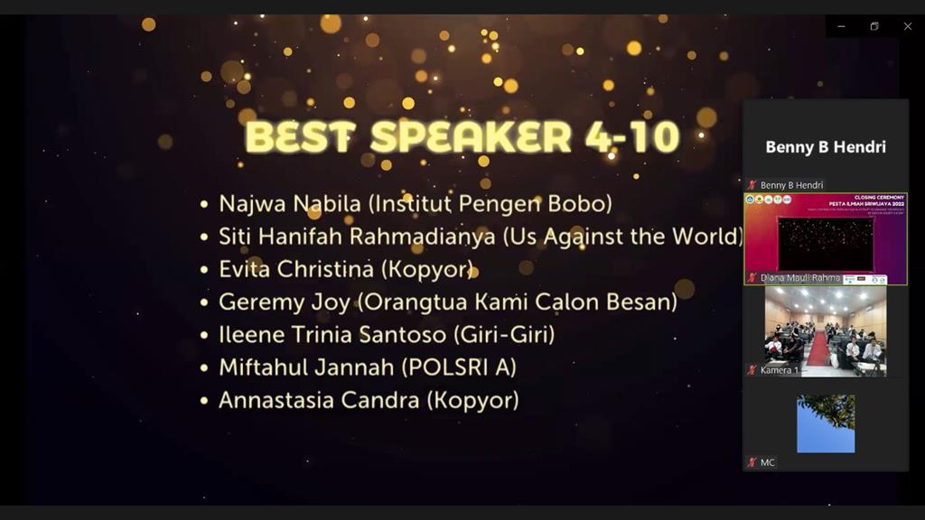 Debat Pesta Ilmiah Sriwijaya (PIS) 2022 merupakan sebuah ajang perlombaan debat mahasiswa tingkat nasional yang diselenggarakan oleh UKM Unsri Riset dan Edukasi (U-READ), Universitas Sriwijaya pada tanggal 27-28 September 2022. Kegiatan ini dilaksanakan secara online melalui media zoom meetings dan diikuti oleh 16 tim yang berasal dari berbagai perguruan tinggi diĀ Indonesia dengan jumlah peserta sebanyak 32 orang. Universitas Tanjungpura menjadi salah satu universitas yang turut berpartisipasi dalam perlombaan ini dengan menurunkan delegasi mahasiswa UKM DUTY (Debating Union of Tanjungpura University) yaitu Benny B Hendri dan Siti Hanifah Rahmadianya yang berhasil meraih Juara 1 dan Pembicara Terbaik (2nd Best Speaker : Benny B Hendri, 5th Best Speaker : Siti Hanifah Rahmadianya).