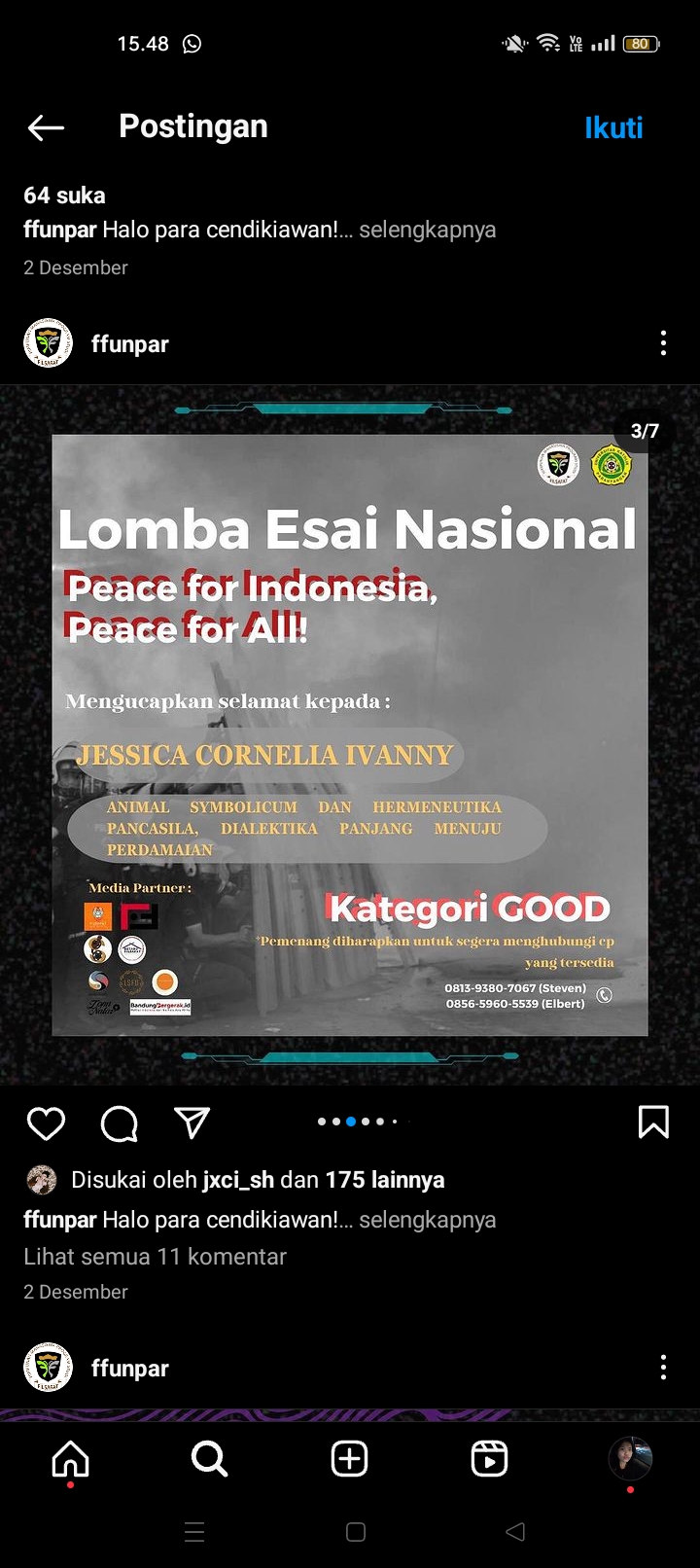 Lomba Esai Nasional 2023 merupakan lomba menulis esai nasional bertemakan “Peace for All, Peace for Indonesia” yang diadakan oleh Himpunan Mahasiswa Program Studi Filsafat Universitas Katolik Parahyangan Indonesia. Karya-karya terbaik dalam lomba ini akan dihimpun dalam sebuah buku. Lomba ini digelar pada 17 Oktober 2023 hingga 2 Desember 2023.