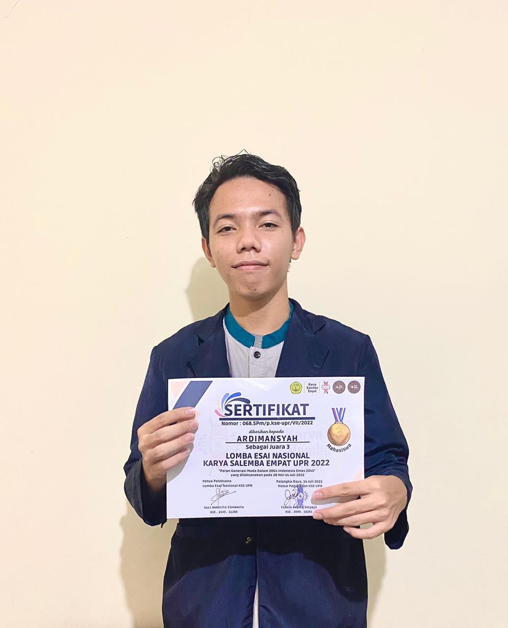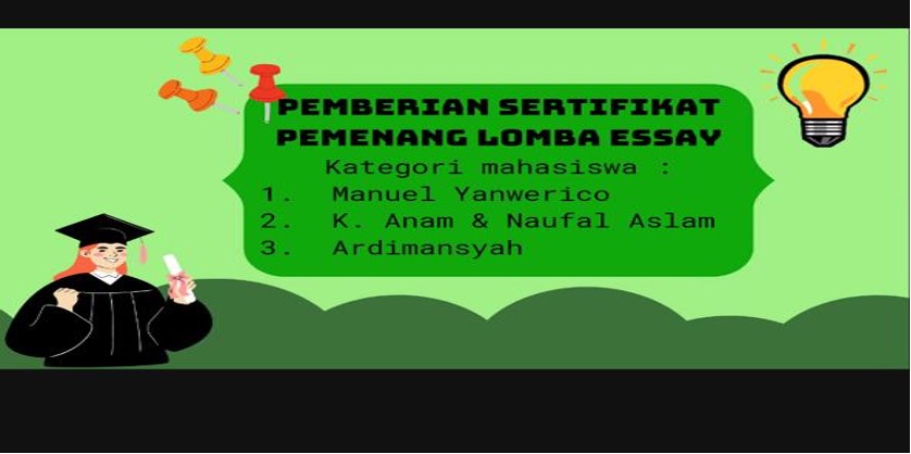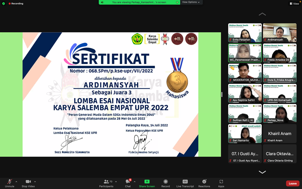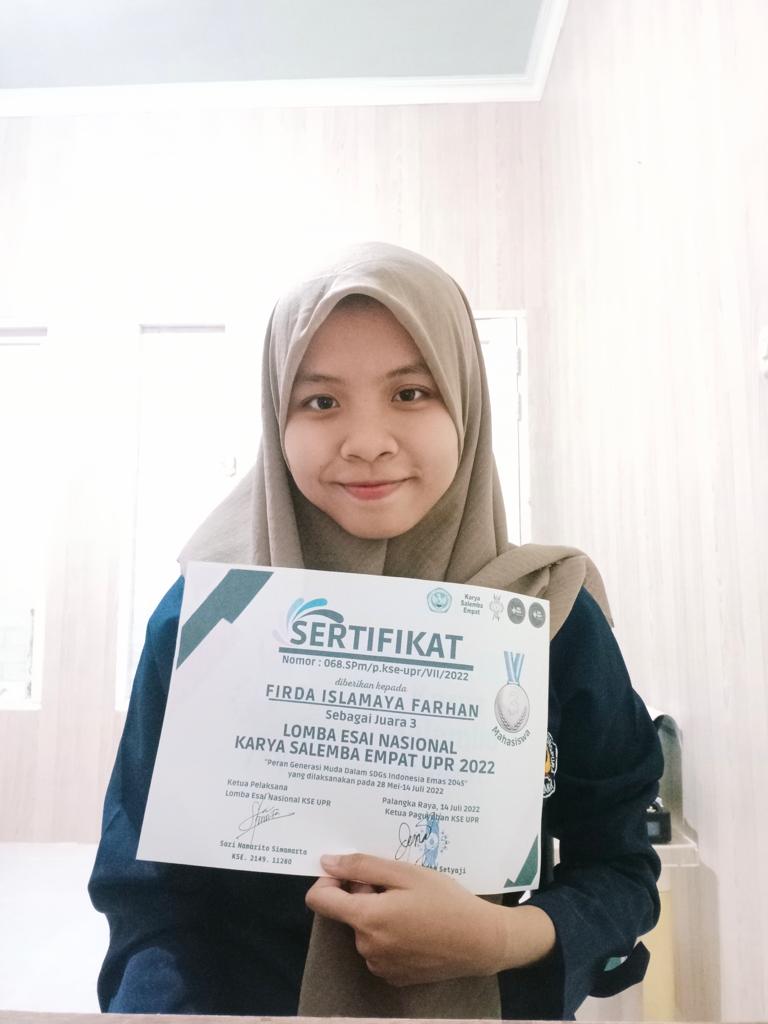 Paguyuban Karya Salemba Empat (KSE) Universitas Palangka Raya menyelenggarakan Lomba Esai Nasional dengan tema “Peran Generasi Muda Dalam SDGs Indonesia Emas 2045” untuk mewadahi generasi muda dalam menuangkan ide-ide kreativitas, dan inovasi sebagai bentuk dukungan dalam mewujudkan program SDGs di Indonesia. Juara 3 berasal dari Universitas Tanjungpura atas nama Ardimansyah dan Firda Islamaya Farhan