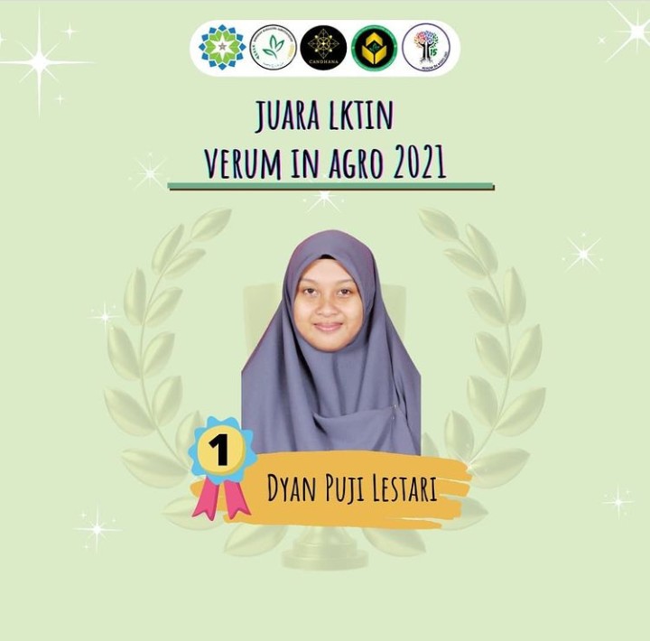 Lomba Esai Nasional of Verum in Agro 2021 dilaksanakan oleh Jurusan Agroteknologi UIN Sunan Gunung Djati, Bandung, dalam rangka DIES Natalis Jurusan Agroteknologi yang ke-15. Tema yang diangkat pada kegiatan ini adalah Optimalisasi Pertanian Indonesia dengan Pemanfaatan Digital dalam Upaya Adaptasi di Era New Normal. Kegiatan ini dilaksanakan pada tanggal 25 November-1 Desember 2021 secara online. Peserta lomba ini terdiri dari 40 mahasiswa yang mewakili perguruan tinggi masing-masing. Acara dimulai dari penyisihan karya, kemudian dilanjutkan dengan presentasi 5 finalis. Perwakilan Universitas Tanjungpura berhasil meraih Juara 1 yang diwakili oleh Dyan Puji Lestari, mahasiswi Jurusan Kimia, Fakultas MIPA, angkatan 2019.