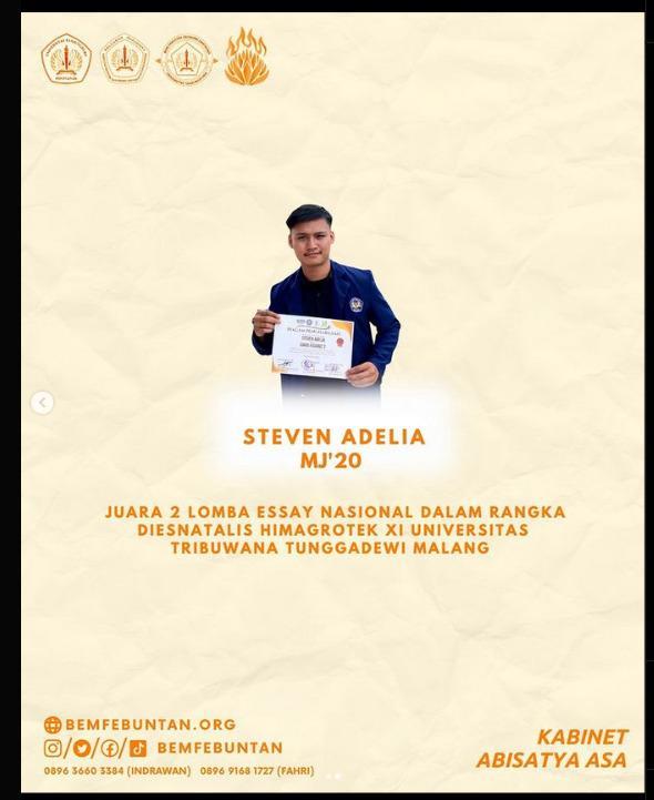 Mahasiswa Fakultas Ekonomi dan Bisnis Universitas Tanjungpura yaitu Steven Adelia (B1021221269) berhasil meraih juara 2.