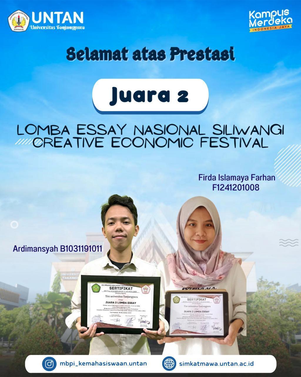 Ekonomi di Indonesia berdasarkan fakta saat ini semakin membaik karena adanya rancangan kebijakan dari pemerintah. Indonesia mengalami pertumbuhan ekonomi (PDB) lebih baik dari tahun 2020 yang sempat mengalami kontraksi. Namun, pertumbuhan ekonomi yang inklusif dan berkelanjutan perlu ditingkatkan. Pembangunan ekonomi yang menciptakan akses dan kesempatan yang luas bagi seluruh lapisan masyarakat secara berkeadilan, meningkatkan kesejahteraan, serta mengurangi kesenjangan antar kelompok dan wilayah. Pada sub tema ini peserta dapat menuangkan ide atau gagasan dan inovasi untuk meningkatkan pertumbuhan ekonomi yang inklusif dan berkelanjutan. Kegiatan ini dimenangkan juara 2 oleh Ardimansyah dari Fakultas Ekonomi dan Bisnis, dan Firda Islamaya Farhan dari Fakultas Keguruan dan Ilmu Pendidikan