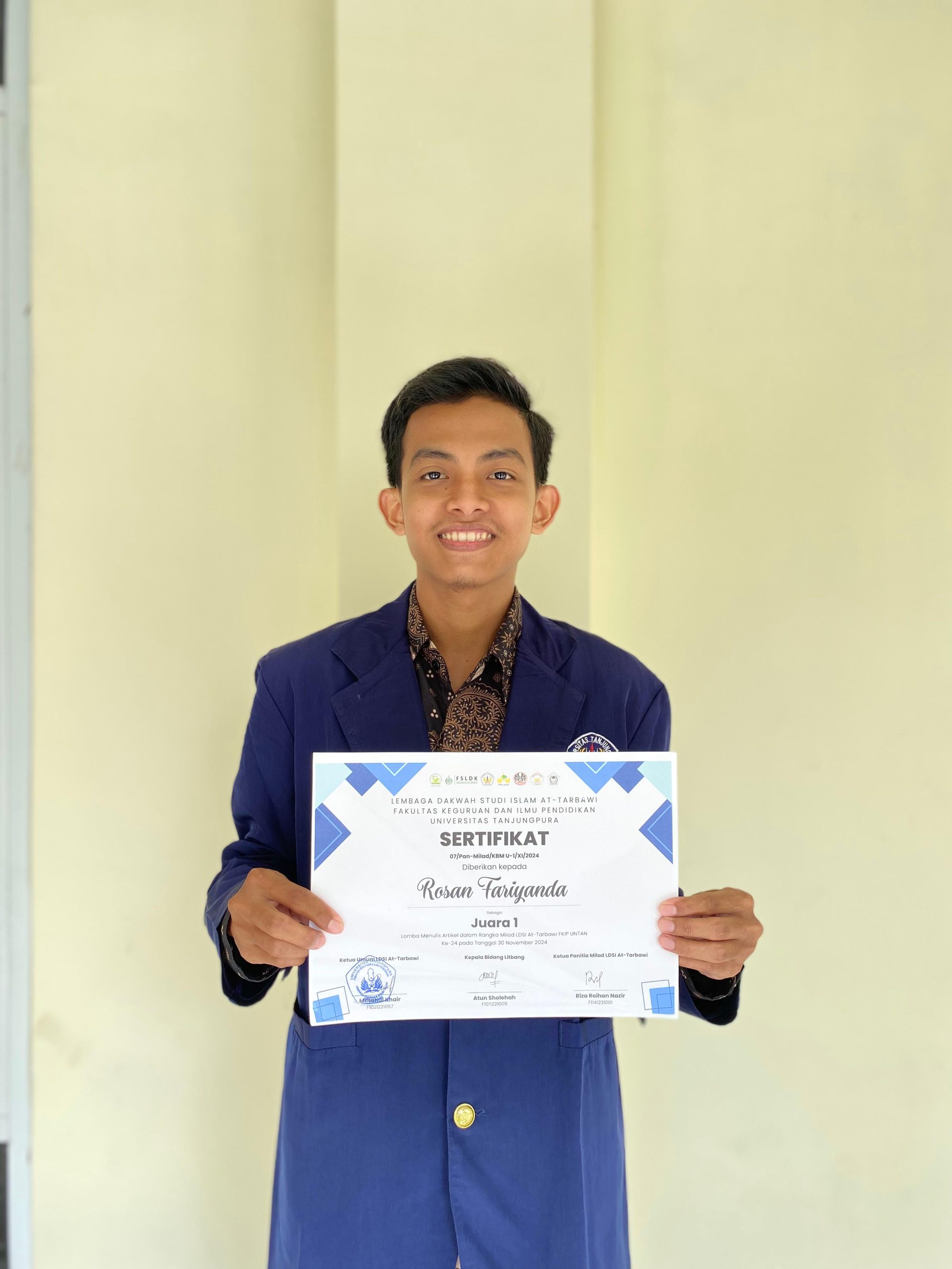 Mahasiswa Fakultas Ekonomi dan Bisnis Rosan Fariyanda (B1031221023) berhasil mendapat juara 1 dalam kategori Lomba Menulis Artikel.