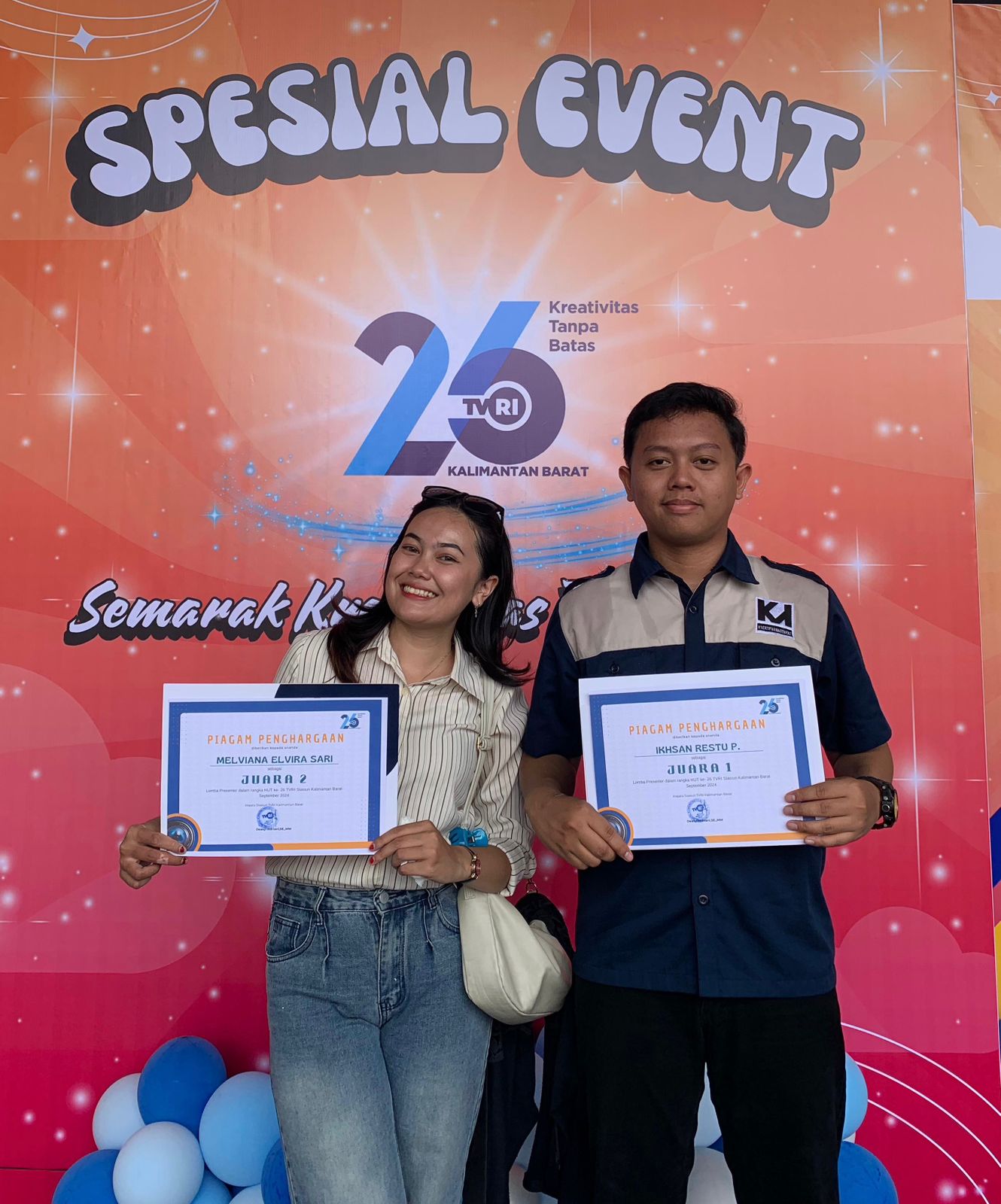 Lomba ini diikuti oleh Ikhsan Restu Prasetyo dengan NIM E1031211094,  mahasiswa Program Studi Ilmu Pemerintahan Fakultas Ilmu Sosial dan Ilmu Politik Universitas Tanjungpura Pontianak dengan meraih Juara 2. Dengan tema “Kreativitas Tanpa Batas” pada HUT yang ke-26 dan slogan “Media Pemersatu Bangsa”, Televisi Republik Indonesia Stasiun Kalimantan Barat diharapkan semakin maju dan jaya di Bumi Khatulistiwa.