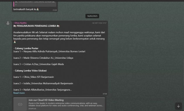 Lomba video edukasi dengan tema Kenali Gejalanya, Cegah Bahayanya: Perangi Kanker Bersama merupakan salah satu program kerja ISMAFARSI Wilayah Kalimantan guna meningkatkan kesadaran dan pengetahuan mahasiswa Farmasi, yang pada gilirannya dapat meningkatkan peran mereka dalam pencegahan dan penanganan kanker di masyarakat.