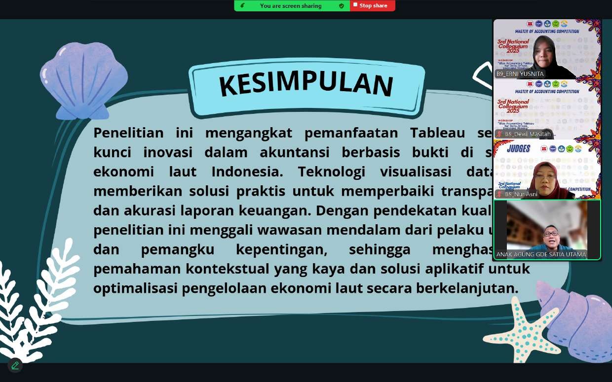 Pada kategori Accounting Information System, mahasiswa Fakultas Ekonomi dan Bisnis Universitas Tanjungpura Erni Yusnita (B2092251006) berhasil meraih juara 1.