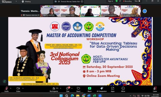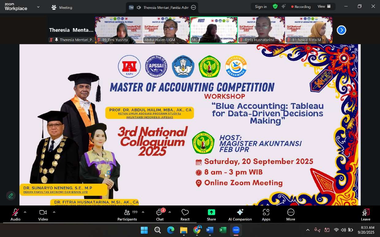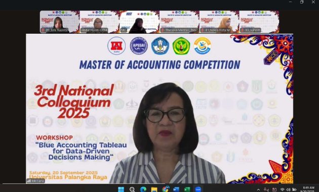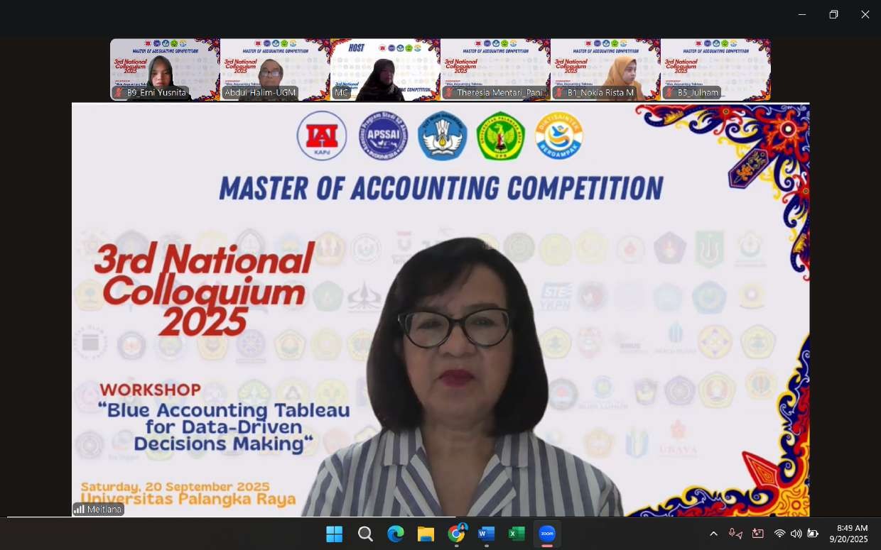 Master of Accounting Competition Workshop 2025 bertemakan “Blue Accounting: Tableau for Data-Driven Decisions Making” merupakan kegiatan perlombaan yang diselenggarakan oleh Universitas Palangka Raya dan Asosiasi Program Studi S2 Akuntansi Indonesia pada 20 September 2025.