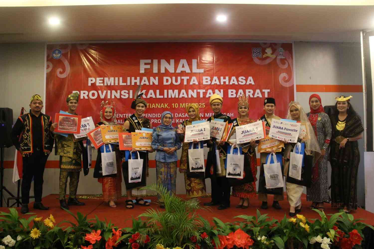 Pemilihan Duta Bahasa Provinsi Kalimantan Barat 2025 telah selesai digelar dengan pemenang Duta Bahasa Putra Terbaik diraih oleh Sebastianus Hugo dari Kabupaten Mempawah dan Duta Bahasa Putri Terbaik diraih oleh Syahda Aresta Maharani dari Kota Pontianak. Ajang ini bertujuan untuk mengapresiasi dan meningkatkan kesadaran generasi muda terhadap bahasa dan sastra, serta mempromosikan penggunaan bahasa Indonesia yang baik dan benar.