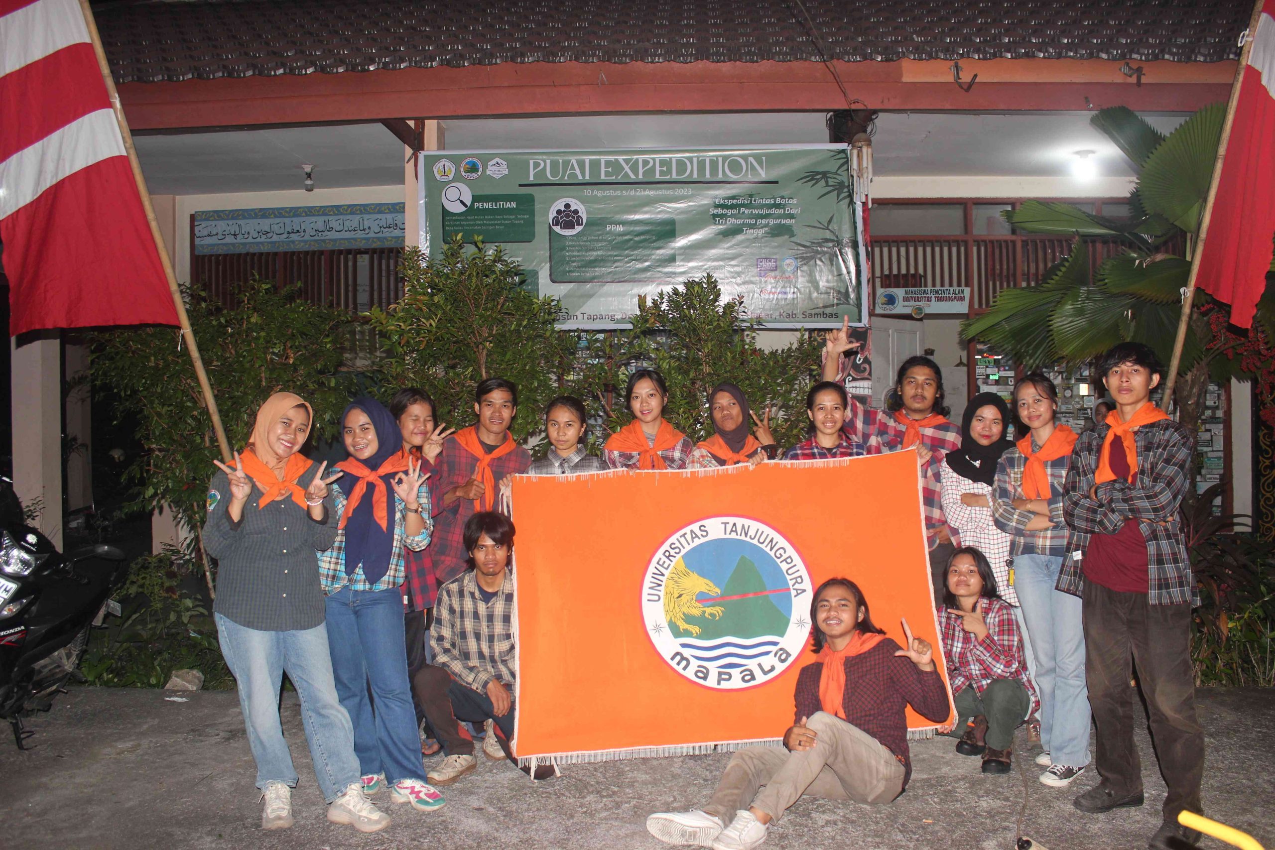 “Ekspedisi lintas batas sebagai perwujutan tri dharma perguruan tinggi” adalah tema yang diusung oleh anggota muda MAPALA UNTAN angkatan 39 dalam menggelar Ekspedisi Wajib. Tahun ini anggota muda akan melakukan ekspedisi wajib dengan nama tim “Puai expedition”. Nama tersebut diambil dari nama gunung yang akan mereka daki yaitu gunung puai atau sering disebut masyarakat sekitar sebagai gunung poe. Tim puai yang beranggotakan 5 orang ini akan melaksanakan ekspedisi wajib di Dusun Tapang, Desa Kaliau, Kecamatan Sajingan Besar, Kabupaten Sambas pada tanggal 10 Agustus 2023. Ekspedisi ini berlangsung selama 12 hari dan selesai pada 21 Agustus 2023.