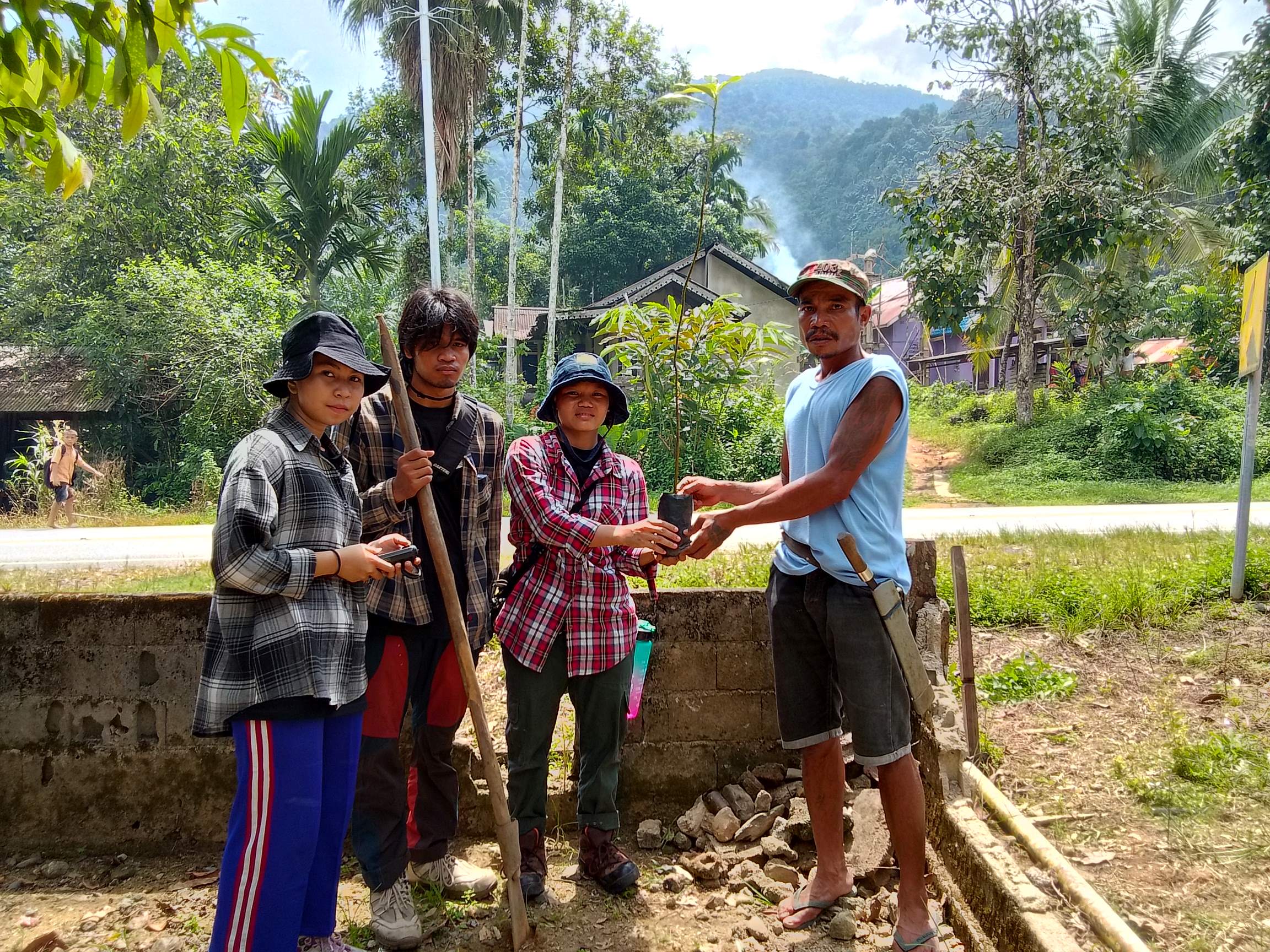 Adapun rangkaian kegiatan ini yang pertama yaitu pengabdian pada masyarakat seperti bakti sosial bersih bersih lingkungan bersama masyarakat sekitar, Pembagain poster tentang manfaat hutan di dusun, penanaman pohon di beberapa titik desa dan penambahan plang di setiap gang dusun.