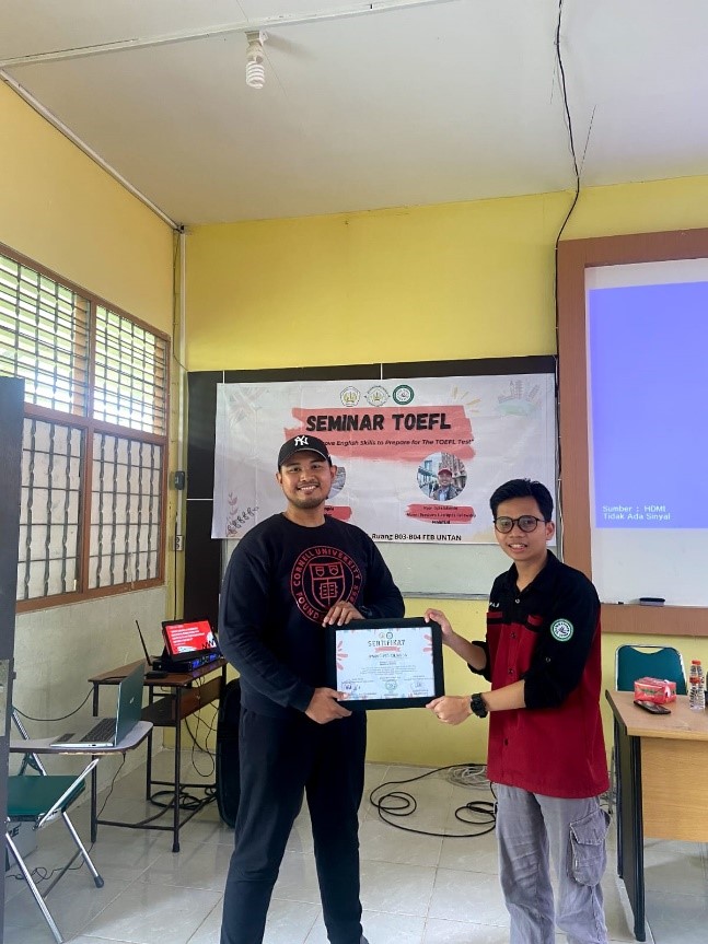 Bidang akademik merupakan bidang yang difokuskan untuk memperluas pengetahuan mahasiswa PPAPK terhadap kemajuan Ilmu Pengetahuan dan Teknologi, integritas kepribadian, menanamkan sikap aktif dan kritis dalam berpikir. Kegiatan dibidang akademik yaitu pelatihan, pembinaan, dan pengembangan mahasiswa PPAPK dalam kegiatan perkuliahan. Salah satu dari kegiatan ini adalah Seminar Toefl dengan tema “How to improve English skills to prepare for the TOEFLTest” yang diadakan untuk mahasiswa baru PPAPK FEB UNTAN 2022 pada hari Sabtu, 29 Oktober 2022 di Ruangan B03-B04 Fakultas Ekonomi dan Bisnis Universitas Tanjungpura dan mengundang Ryan Cipta Julianda sebagai narasumber.