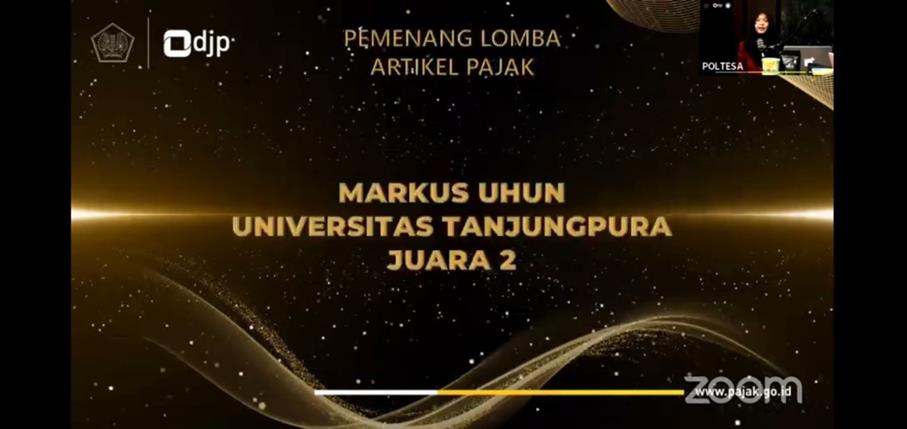 Kegiatan ini di langsungkan secara online dari 24 Juni 2022 – 31 Juli 2022 dan diikuti 25 orang dari 14 Tax Center Perguruan Tinggi Negeri di Kalimantan Barat. Markus Uhun sebagai perwakilan dari Fakultas Ekonomi dan Bisnis berhasil meraih Juara 2.