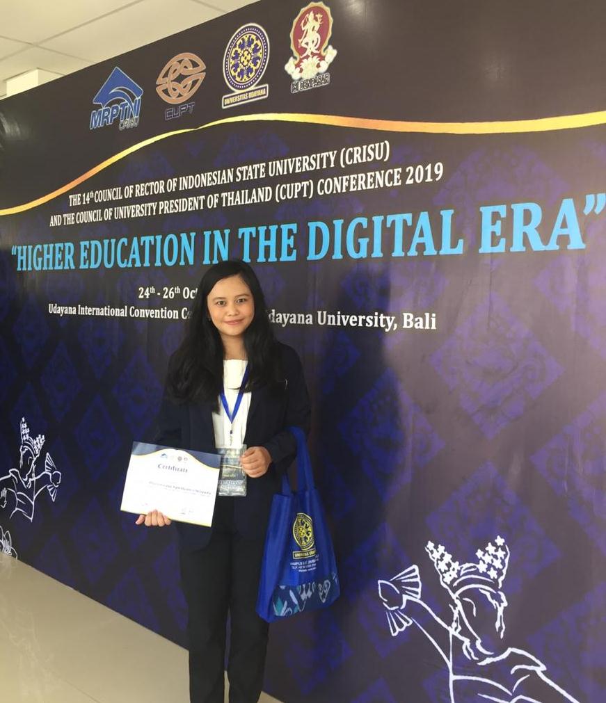 Maria Adisti dan Veronica Putri, 2 mahasiswa Program Studi Hubungan Internasional Fakultas Ilmu Sosial dan Ilmu Politik Universitas Tanjungpura, berkesempatan mengikuti sebuah konferensi Internasional antara The Council of Rector Of Indonesia University dan The Council of University President of Thailand. Acara yang dilaksanakan di Universitas Udayana tepatnya di Udayana International Convention Center, Jimbaran, Bali ini berlangsung tanggal 24-26 Oktober 2019.
