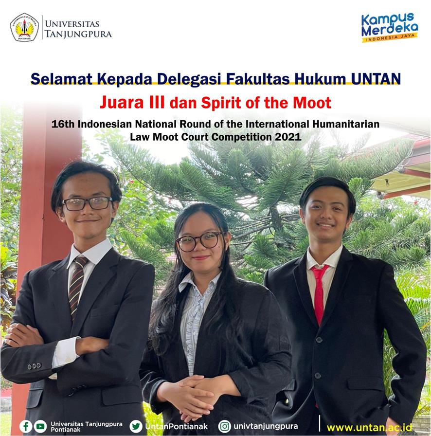 mendapatkan juara 3 (2nd-runner up) dalam perlombaan peradilan semu terkait hukum perang yang diselenggarakan oleh ICRC Indonesia dan Timor Leste. didalam perlombaan ini terdapat dua peran yaitu peran oralist dan juga researcher dimana Leonardo (A1011171140) dan Valentine Querubin Hermanto (A1011191076) menjadi Oralist 1 & 2, dan Randy Febrian (A1011191053) sebagai Researcher.