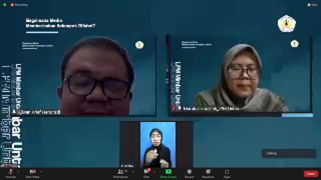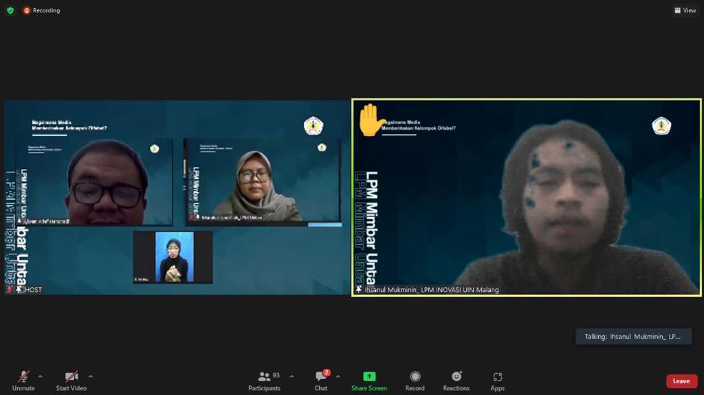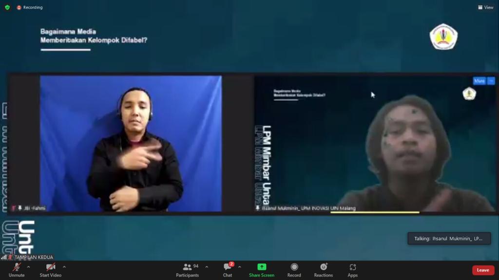 Beberapa media di Indonesia mulai aktif dalam memberitakan kelompok penyandang disabilitas. Namun, tak jarang pula media yang justru menekankan pemberitaan kepada “pahlawan” disabilitas dibanding terfokus terhadap penyandang disabilitasnya langsung serta keaktifan mereka dalam lingkungan bermasyarakat, sehingga tujuan dalam memberikan ruang untuk bersuaran pun bergeser. Berangkat dari permasalah tersebut, maka dalam rangka memperingati HUT LPM untan ke-XXIII mengadakan Webinar Nasional bertajuk “Bagaimana Media Memberitakan Kelompok Difabel” pada Sabtu, 23 April 2022 dengan mengundang pemateri yang luar biasa dari Ketua Aliansi Jurnalistik Indonesia 2022 dan salah satu staf media/redaktur solider. Tidak hanya itu, webinar ini juga dilengkapi dengan juru bahasa isyarat dari Pontianak selama rangkaian webinar berlangsung.