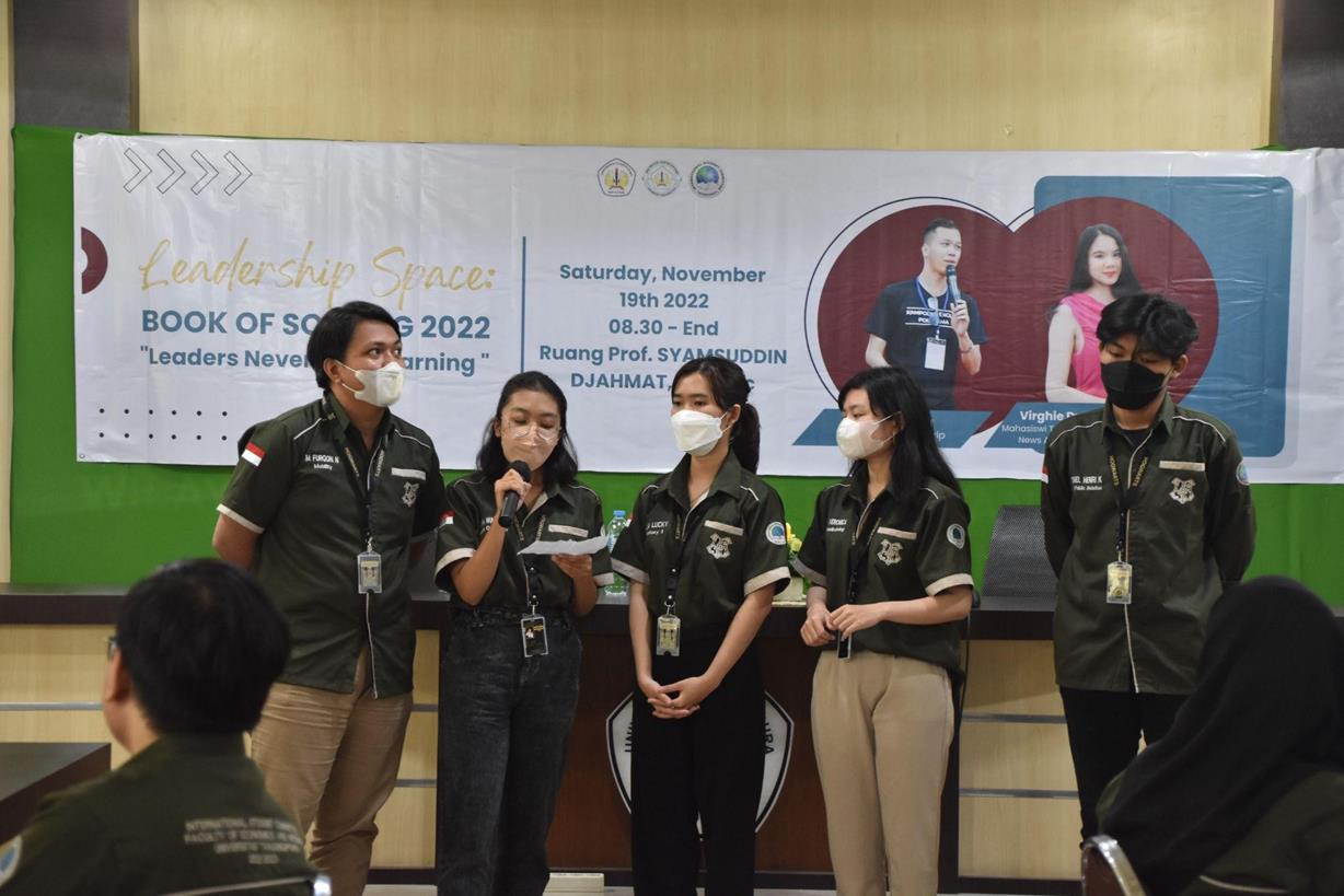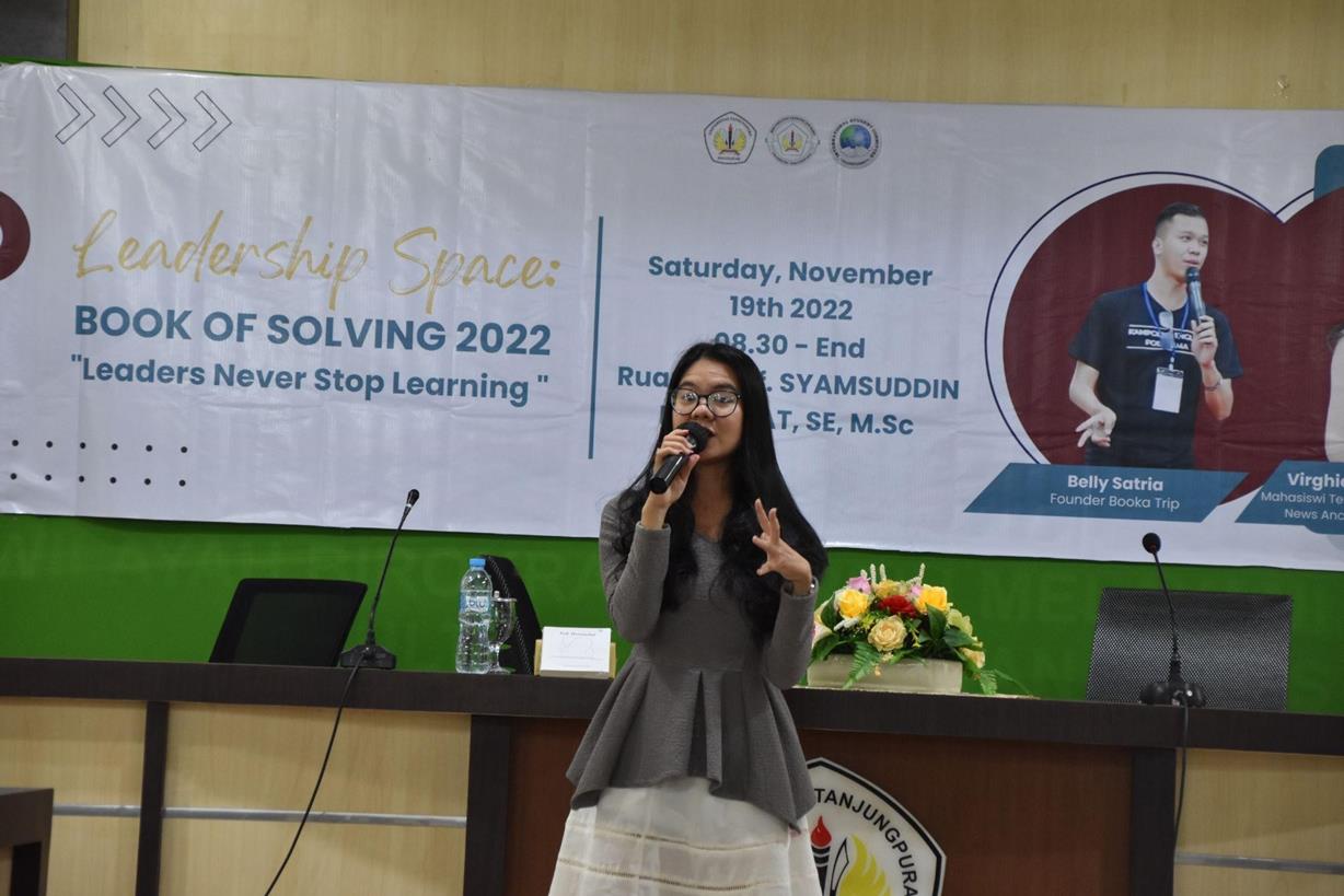 Pada tanggal 19 November 2022, International Student Committee (ISC) FEB UNTAN mengadakan kegiatan Workshop Leadership Space: Book of Solving. Kegiatan ini bertujuan untuk mengembangkan kualitas diri para pengurus ISC dalam hal kepemimpinan untuk bekal di masa depan. Sesuai dengan tema yang diangkat pada tahun ini yaitu “Leaders Never Stop Learning” yang dimana dalam hal ini para pengurus ISC akan diasah kemampuannya dan Mempertajam skill problem solving serta time management untuk membantu para pengurus ISC dalam menjalankan tanggung jawabnya sebagai pengurus dalam satu periode mendatang.Kegiatan ini dilaksanakan di Ruang Prof. Syamsuddin Djahmat FEB UNTAN dengan partisipan pemateri yaitu Belly Satria dan Virghie Dynaz Koesoema serta seluruh pengurus terpilih International Student Committee periode 2022/2023 FEB UNTAN.