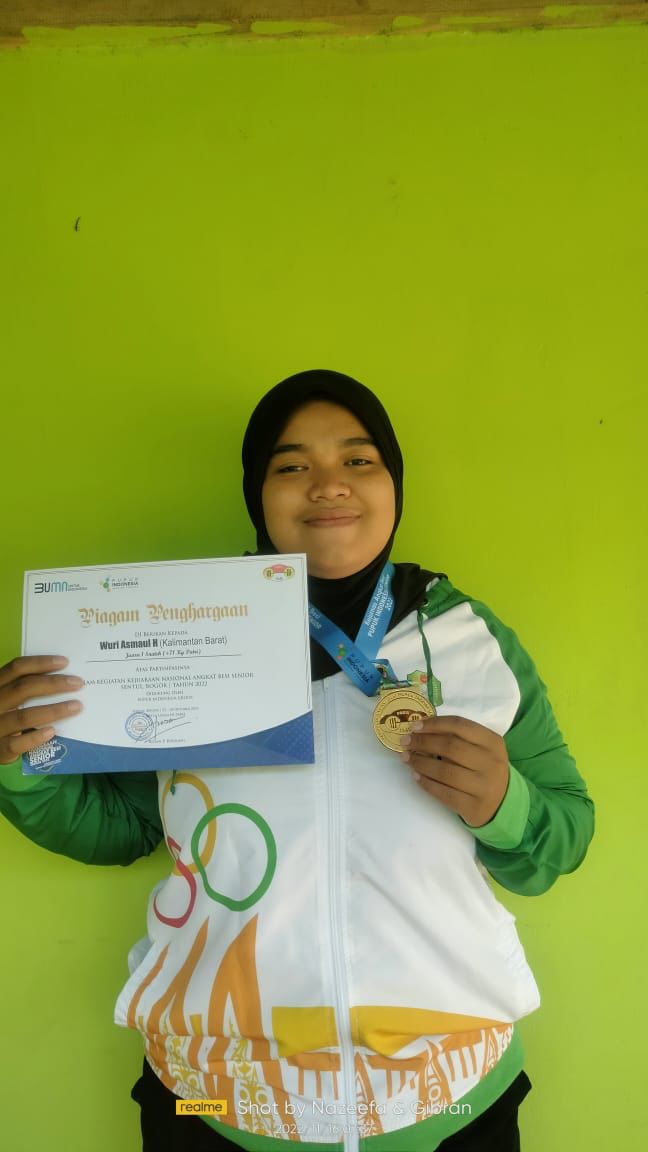 Wuri Asmaul Hasanah, mahasiswa Program Studi Administrasi Perkantoran Fakultas Ilmu Sosial dan Ilmu Politik Universitas Tanjungpura berhasil meraih medali emas dalam Kejuaraan Nasional Angkat Besi Senior Pupuk Indonesia Tahun 2022 yang dilaksanakan di Ballroom Hotel Lorin, Sentul, Bogor, Jawa Barat. Kejuaraan yang dilaksanakan tanggal 25 hingga 28 Oktober 2022 ini diikuti oleh 84 lifter terbaik Indonesia dari 18 provinsi.